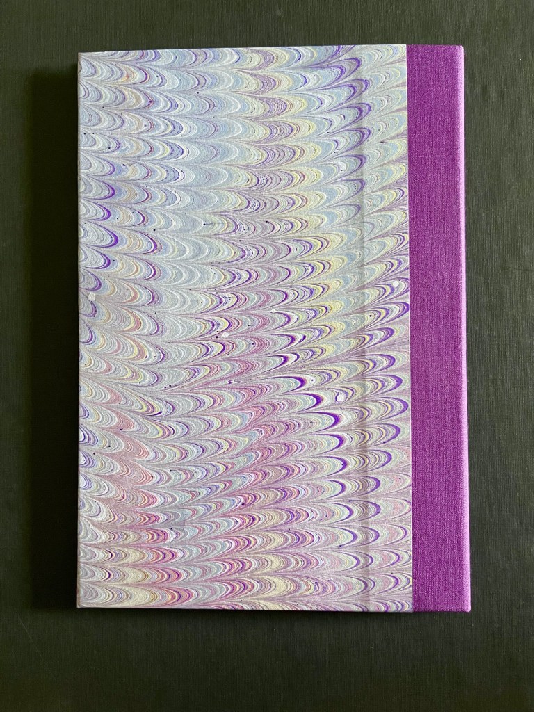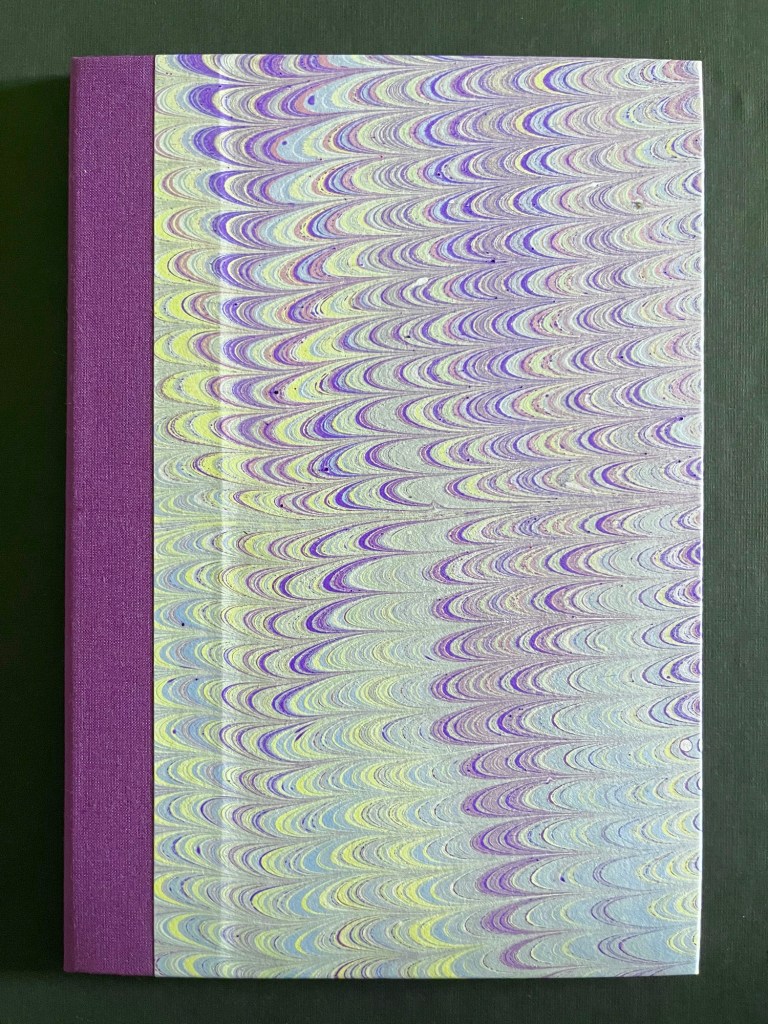 Pale purples, lilacs and lemon marbling.